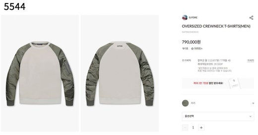지포어 OVERSIZED CREWNECK T-SHIRTS 카키 남성용(1컬러)