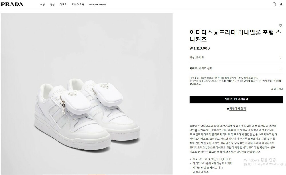 프라다 X 아디다스 콜라보 리나일론 포럼 스니커즈 화이트 남여공용(1컬러)