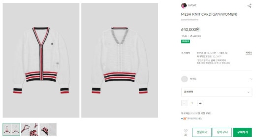 지포어 매.장.판 메쉬 니트 가디건 화이트 여성용(1컬러)
