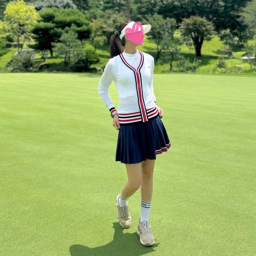 ➡️ 비비드한 색감에 배색 디자인이 돋보이며 Circle G's 자수 로고에서부터 느껴지는 세련미는 색다른 골프 룩을 완성