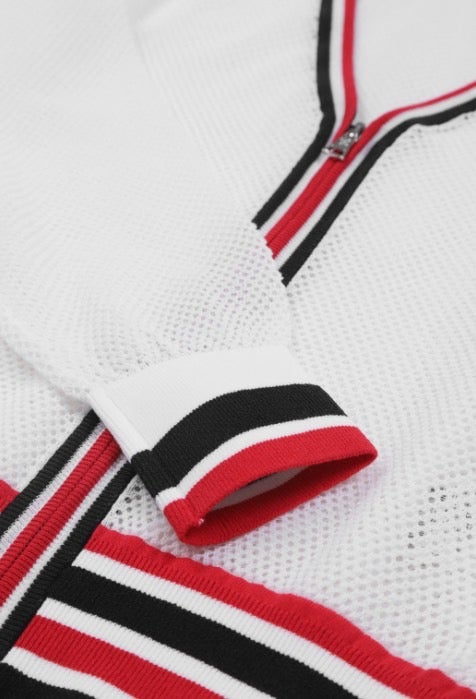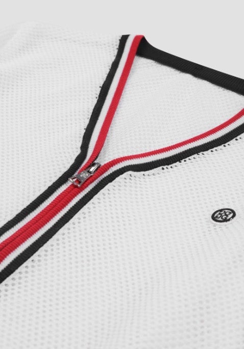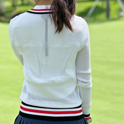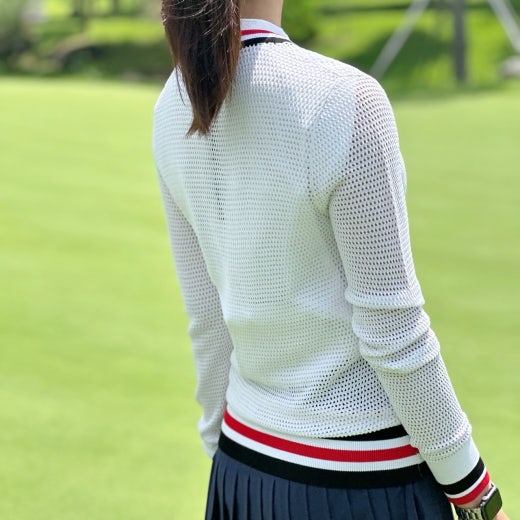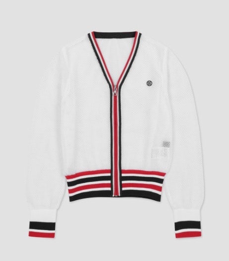 ➡️ 경쾌한 메쉬 소재가 돋보이는 풀집업 스웨터