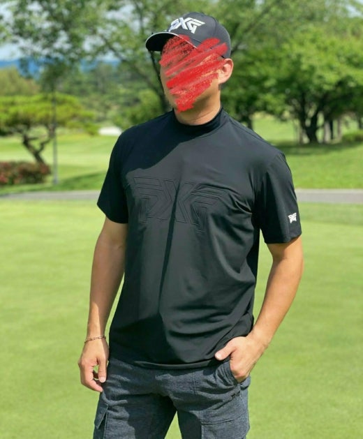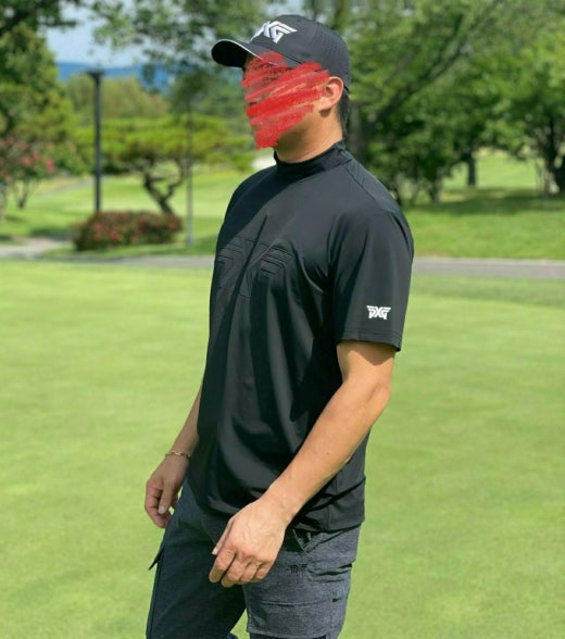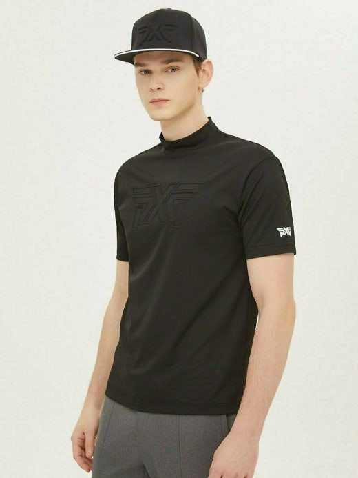 PXG 매.장.판 썸머 빅 로고 모크넥 쇼츠 슬리브 티셔츠 블랙 남성용(1컬러)