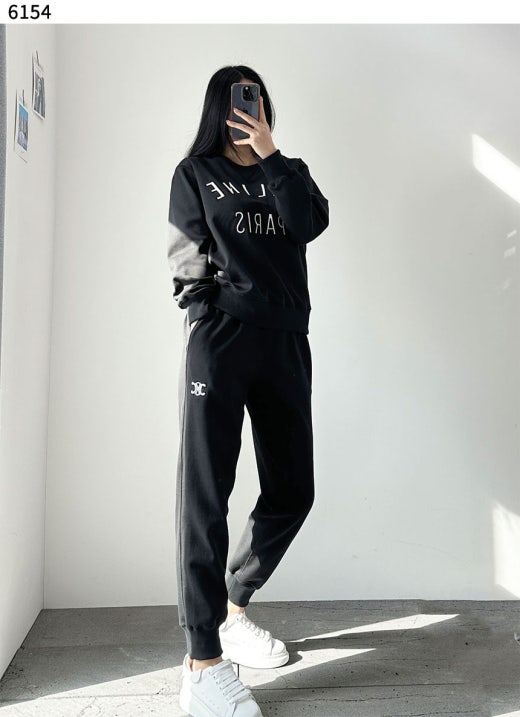 셀린느 파리 로고 라운드 맨투맨 트레이닝 셋 남여공용(2컬러)