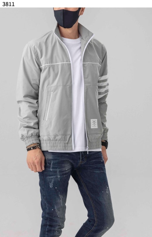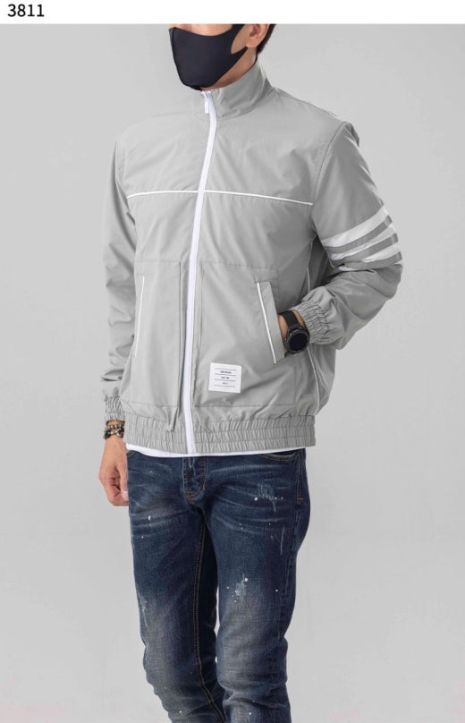 톰브라운 삼선 차이나 윈드브레이커 자켓 그레이 남성용(1컬러)