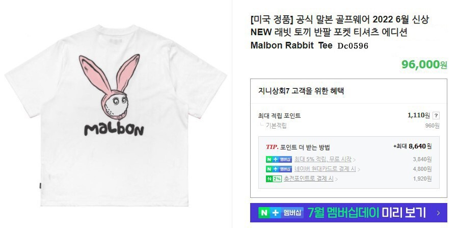 말본 토끼 코튼 라운드 반팔티셔츠 남여공용(1컬러)