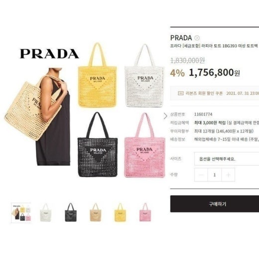 프라다 라피아 토트백 ⚓042 여성용(2컬러)