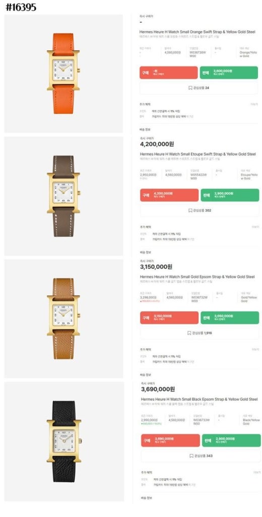 에르메스 H 아워 워치 앱송 골드 여성용(5컬러)