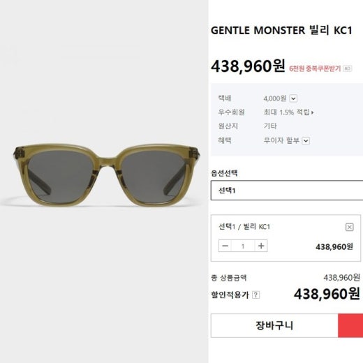 젠틀몬스터 빌리 KC1 선글라스 남여공용(1컬러)