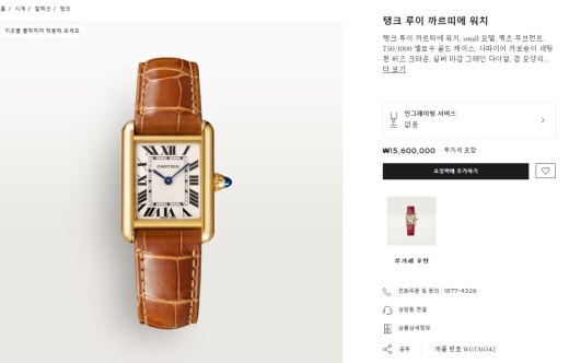 까르띠에 탱크 루이 워치 스몰 옐로우골드 여성용(1컬러)