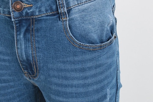 - 슬림 일자핏의 디자인으로 성형워싱기법으로 가공하여 더욱 매력적인 청바지