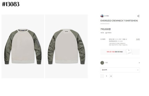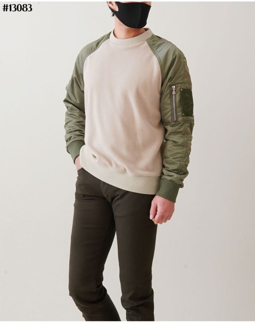 지포어 오버사이즈 나그랑 플리스 맨투맨 카키베이지 남성용(1컬러)