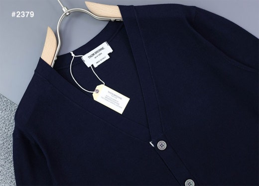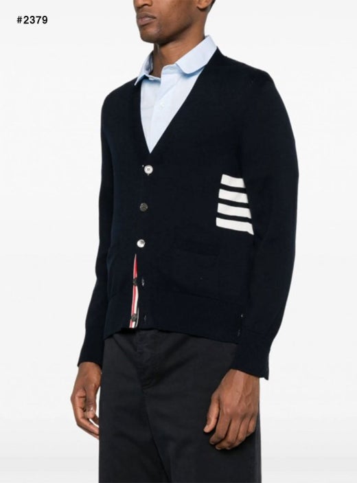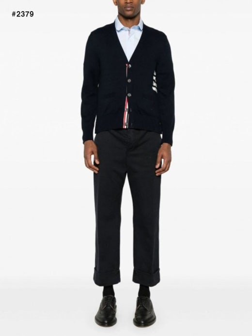 톰브라운 인타르시아 4바 V넥 가디건 네이비 남성용(1컬러)