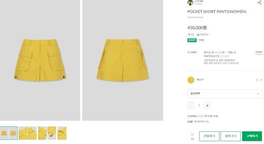 지포어 매.장.판 포켓 쇼츠 팬츠 옐로우 여성용(1컬러)