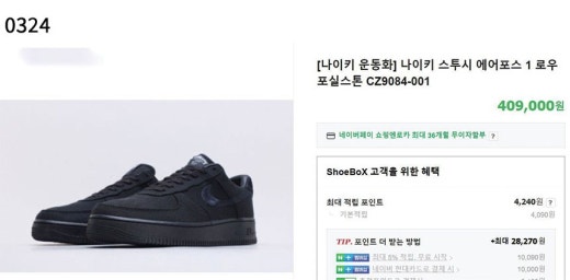 나이키 x 스투시 에어 포스1 로우 스니커즈 블랙 남여공용(1컬러) 🅱️빅사이즈