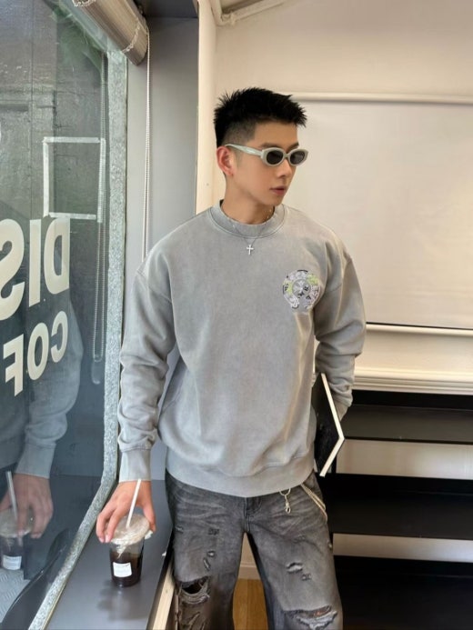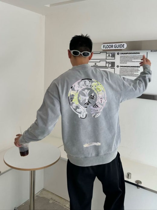 크롬하츠 프린팅 피그먼트 맨투맨 그레이 남여공용(1컬러)