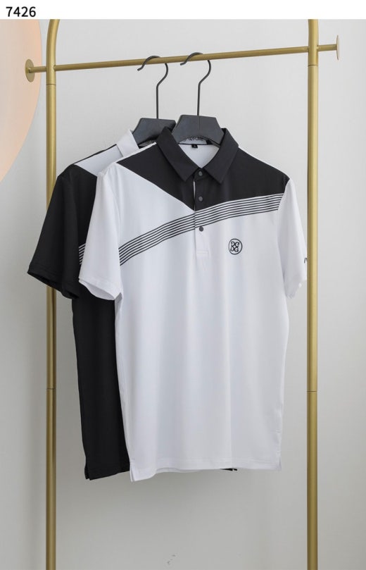 지포어 배색 스트라이프 반팔 카라티 남성용(2컬러)