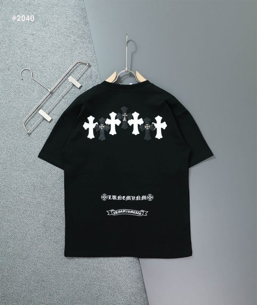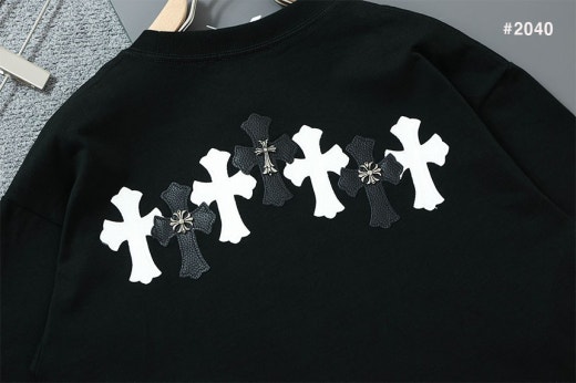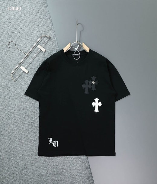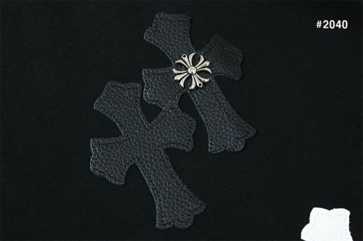 크롬하츠 세메터리 레더 패치 라운드 반팔 티셔츠 블랙 남성용(1컬러)