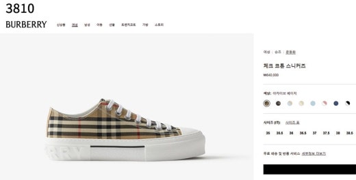 버버리 체크 코튼 스니커즈 브라운 남여공용(1컬러)