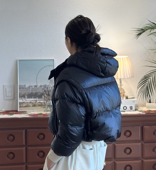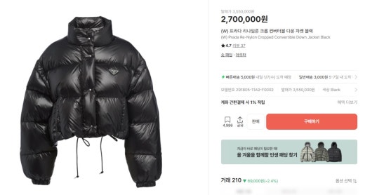 프라다 매.장.판 리나일론 크롭 컨버터블 다운 자켓 블랙 여성용(1컬러)