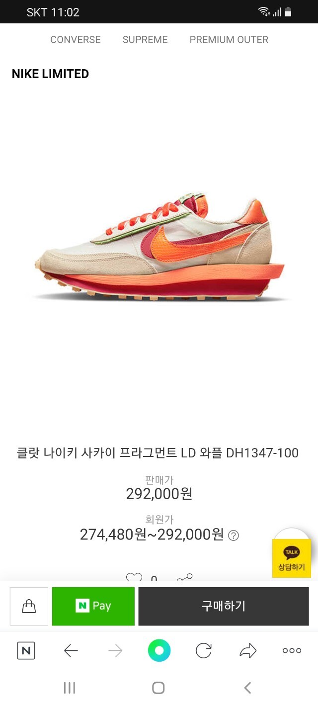 나이키 사카이 프라그먼트 LD 와플 오렌지 남여공용(1컬러)