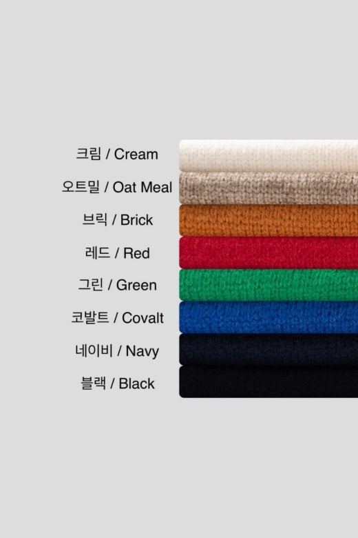 - 블랙, 네이비, 레드, 그린, 오트밀, 코발트블루, 크림, 브릭 ←(8컬러)