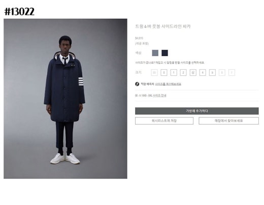 톰브라운 폴리 트윌 4-바 사이드라인 풋볼 파카 블랙 남성용(1컬러)