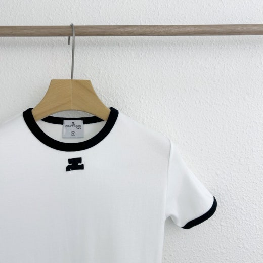 고급 수입티셔츠에 사용하는 100% 코튼 소재로 부드럽고 텐션감있으며 신축성도 좋은 티셔츠입니다. 심플하면서 클래식한 디자인에 가슴부분 꾸레쥬 시그니처 로고 프린팅과 티셔츠 상단에 꾸레쥬 시그니처 패치로 고급스러움을 더한 티셔츠로 데일리로 착용하기 좋고 가디건이나 자켓 안에 코디하기에 좋은 제품입니다.