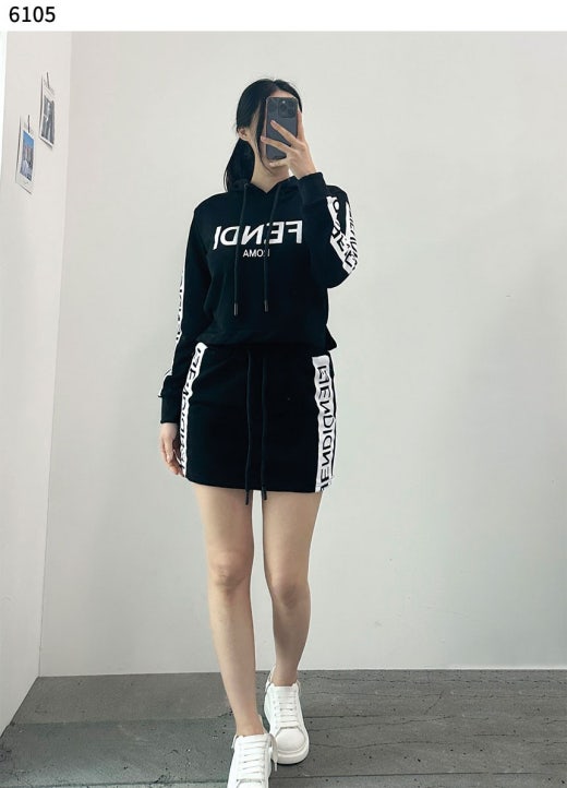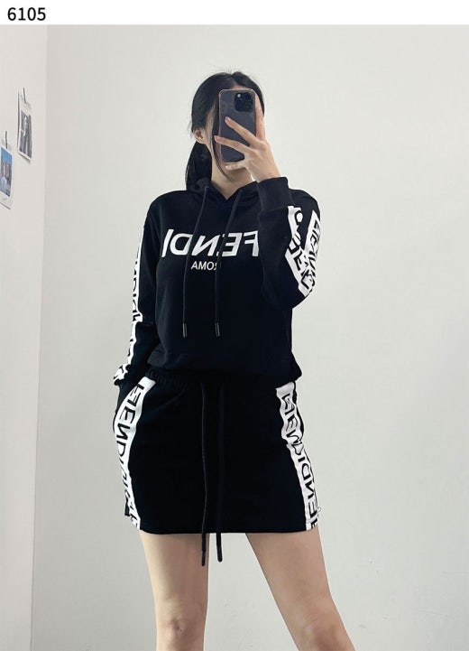 펜디 블랙로고 후드 스커트 세트 블랙 여성용(1컬러)