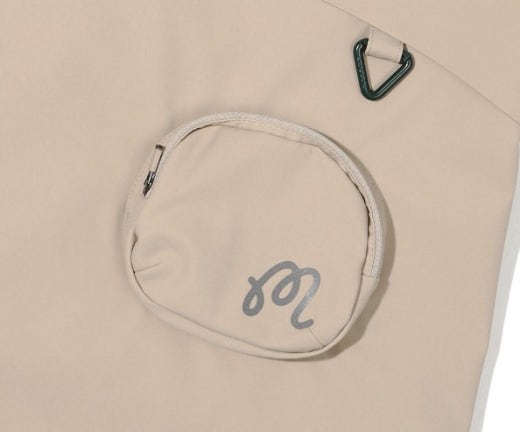 ➡️ 앞뒤 길이의 편차를 주어 스포티한 무드를 강조하였으며 뒤쪽에 볼케이스 주머니와 MABON 스크립트 레이저 타공을 하여 테크니컬한 룩과 실제기능을 더하였습니다