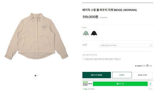 말본 매.장.판 베이직 스윙 볼 파우치 방풍 자켓 베이지 여성용(1컬러)