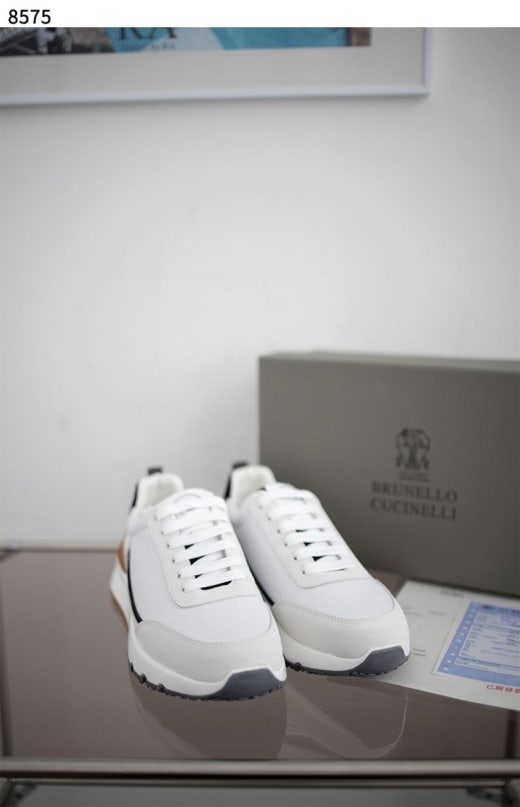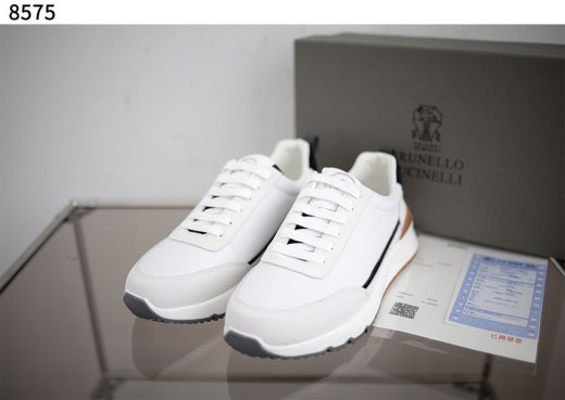브루넬로 쿠치넬리 펀칭 레더 스니커즈 화이트 남성용(1컬러)