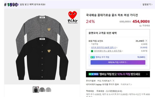 꼼데가르송 골드하트 라운드 가디건 여성용(2컬러)