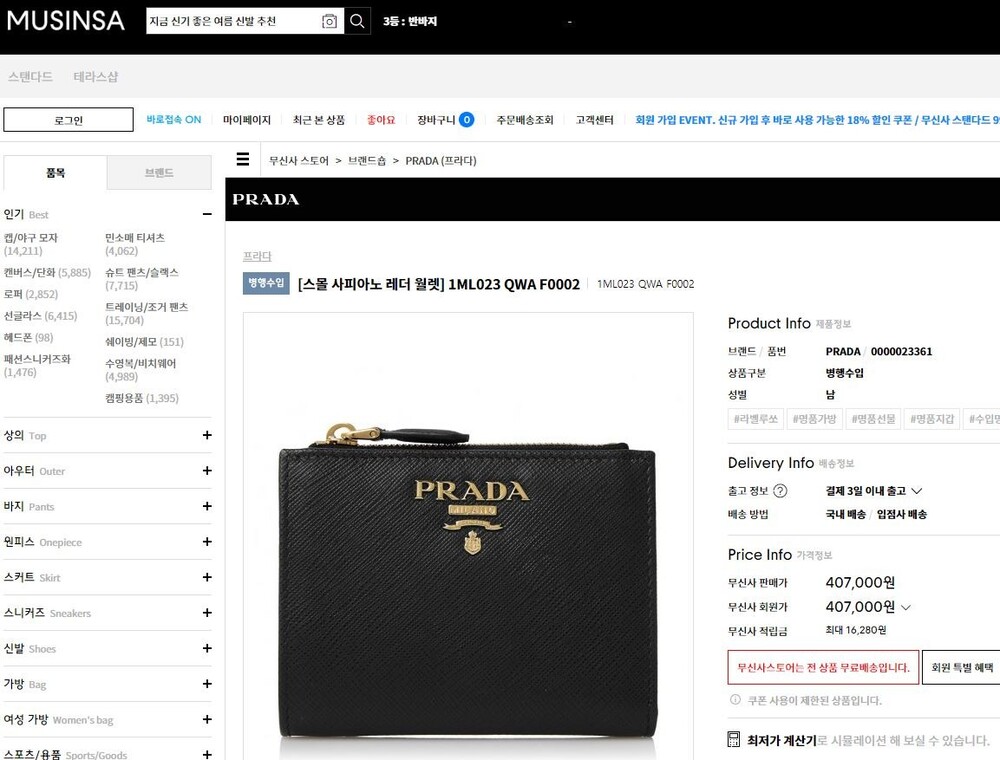 프라다 사피아노 레더 월릿 남여공용(1컬러)