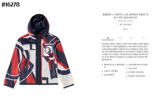 몽클레어 x 크레이그 그린 패치 워크 가우스 후드 자켓 레드네이비 남성용(1컬러)
