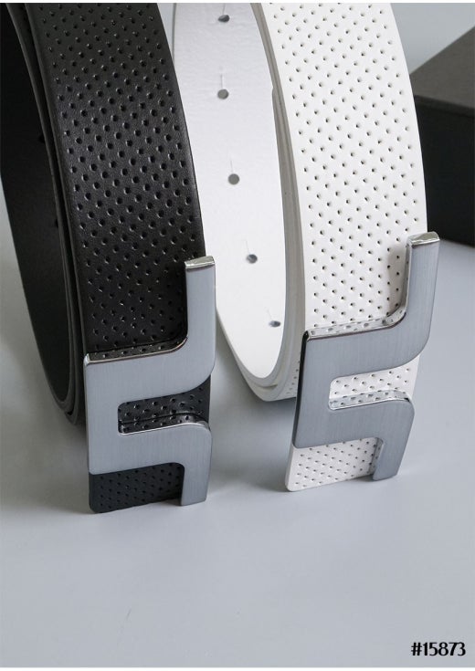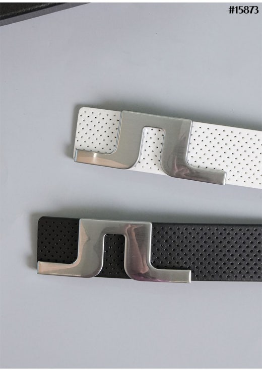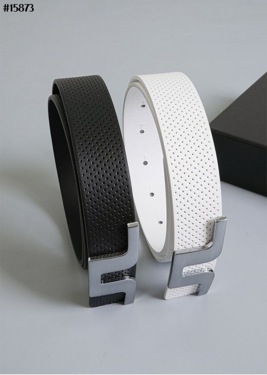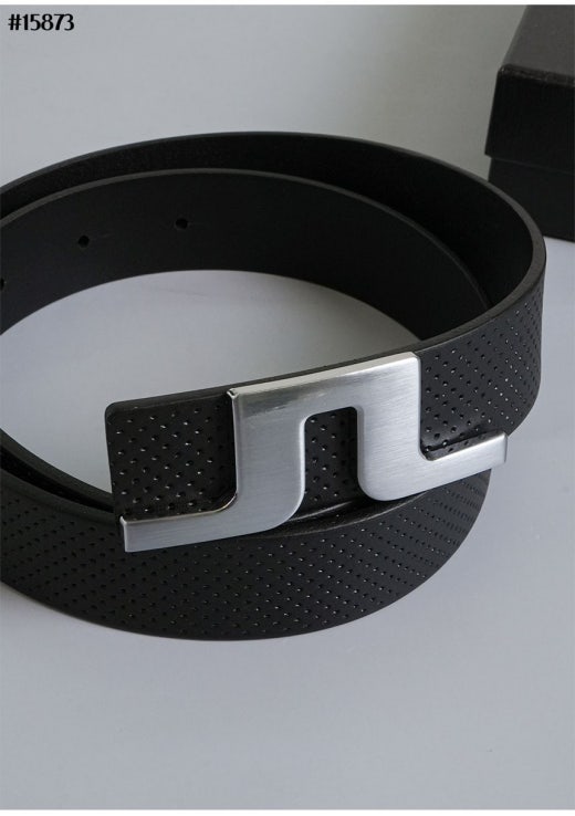 제이린드버그 스틸 버클 로고 베이직 타공 레더 벨트(컷팅식) 남성용(2컬러)