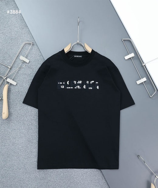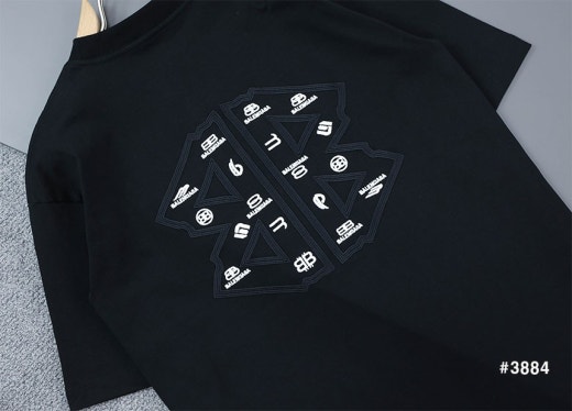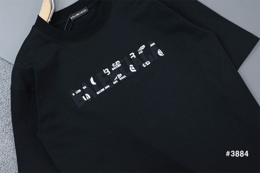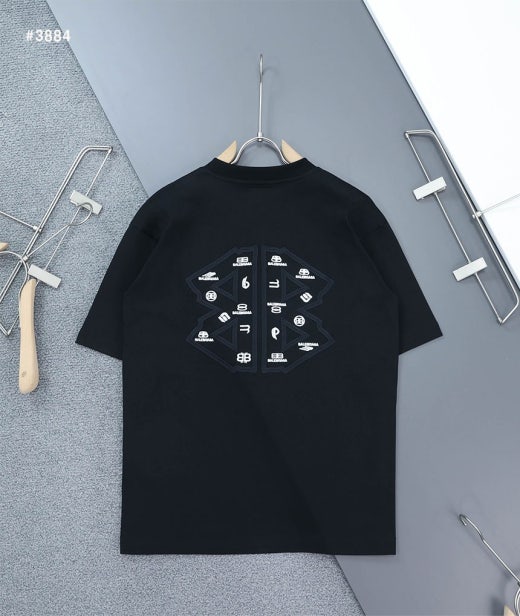 발렌시아가 빈티지 웨이브자수 로고 라운드 반팔 티셔츠 블랙 남여공용(1컬러) 🅱️빅사이즈