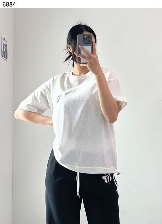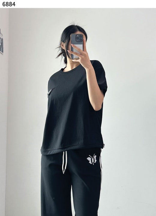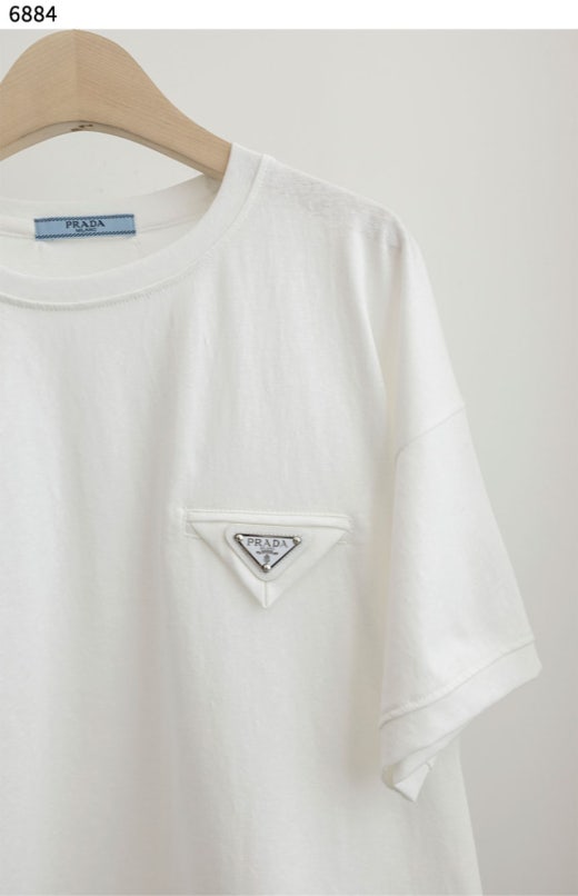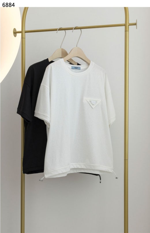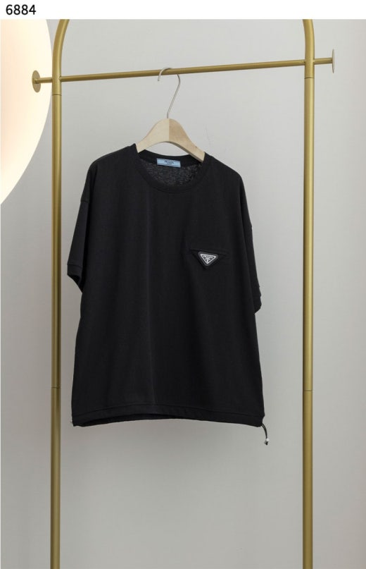 프라다 삼각로고 라운드 스트링 반팔티셔츠 블랙 여성용(1컬러)