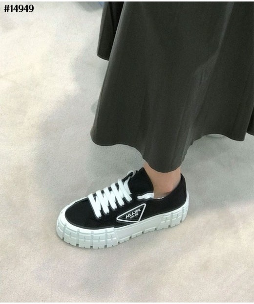프라다 개버딘 더블 휠 플랫폼 스니커즈 블랙 여성용(1컬러)