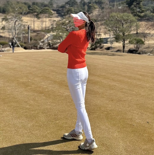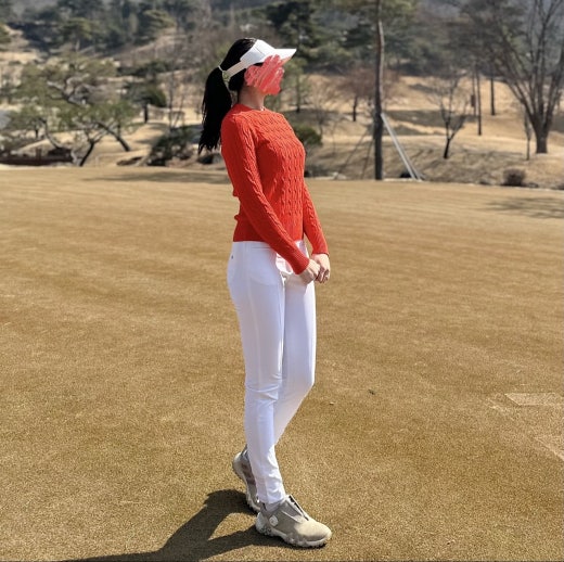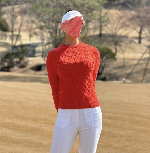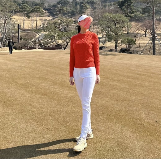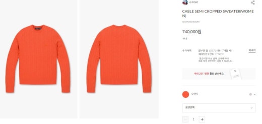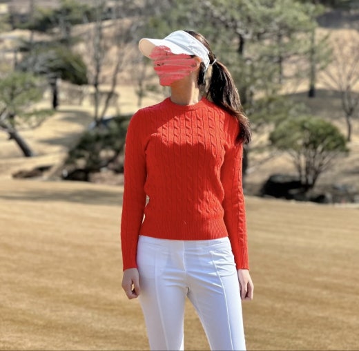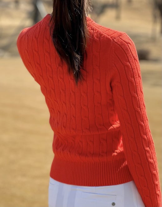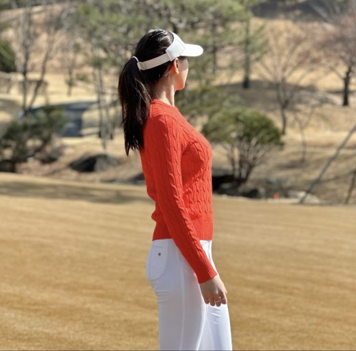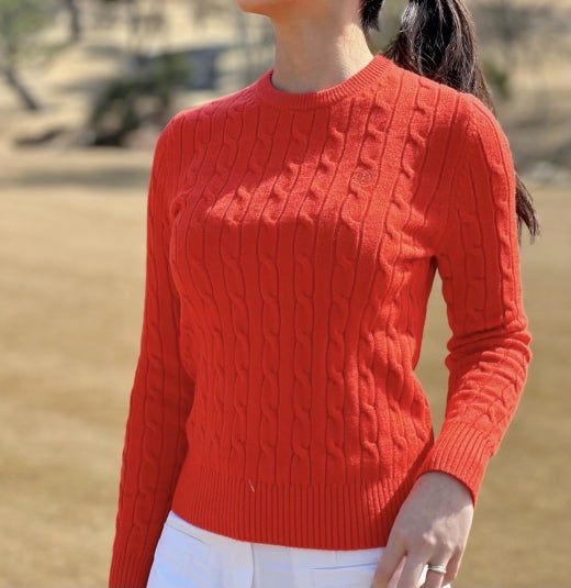 지포어 매.장.판 케이블 세미 크롭 스웨터 오렌지 여성용(1컬러)