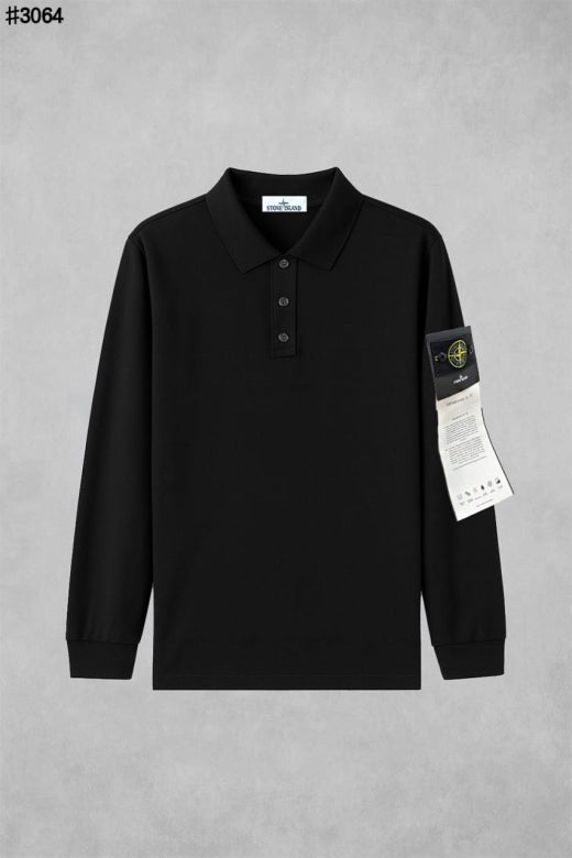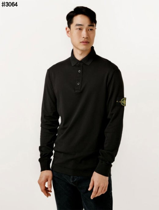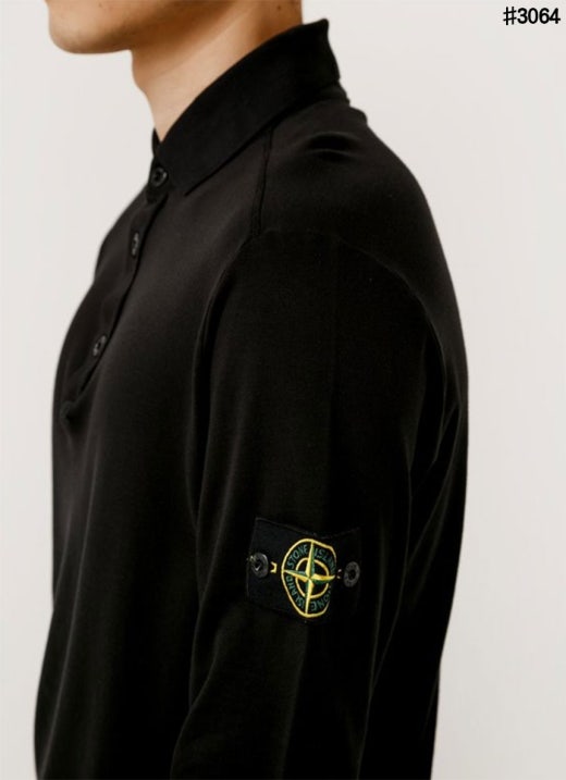 스톤아일랜드 와펜 패치 롱 슬리브 폴로 티셔츠 블랙 남성용(1컬러) 🍀세일
