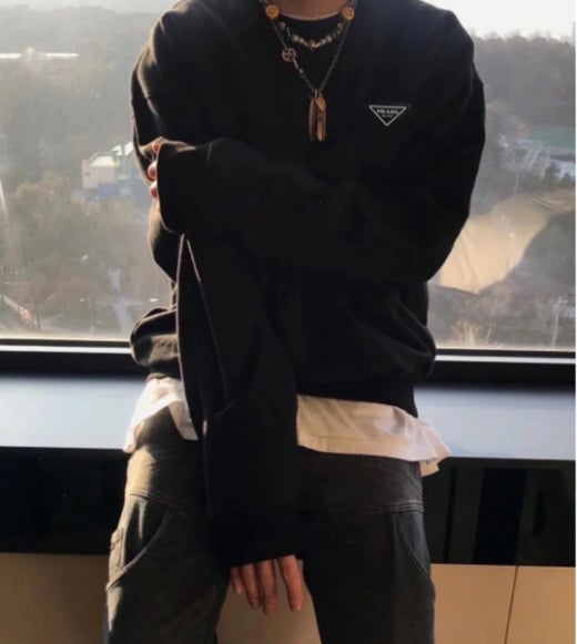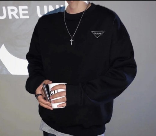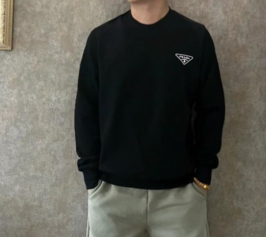 프라다 디테일 맨투맨 블랙 남여공용(1컬러)