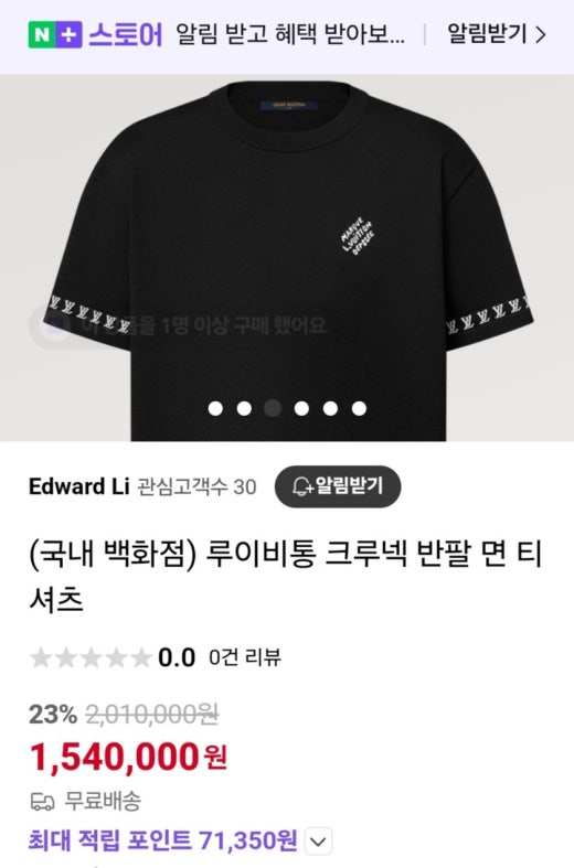 루이비통 크루넥 반팔티 블랙 남여공용(1컬러)