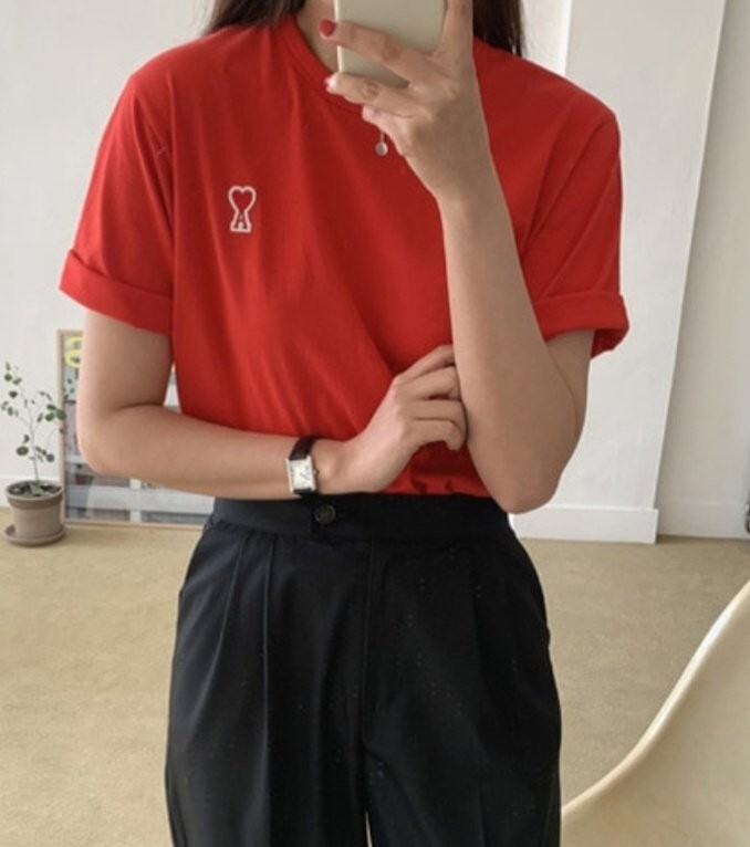 아미 스몰하트 라운드 반팔티셔츠 남여공용(4컬러)