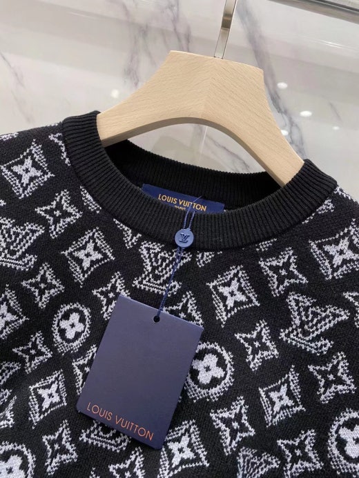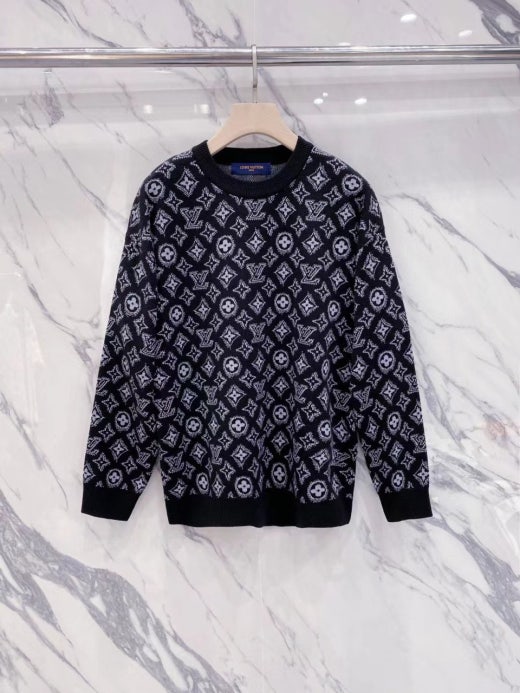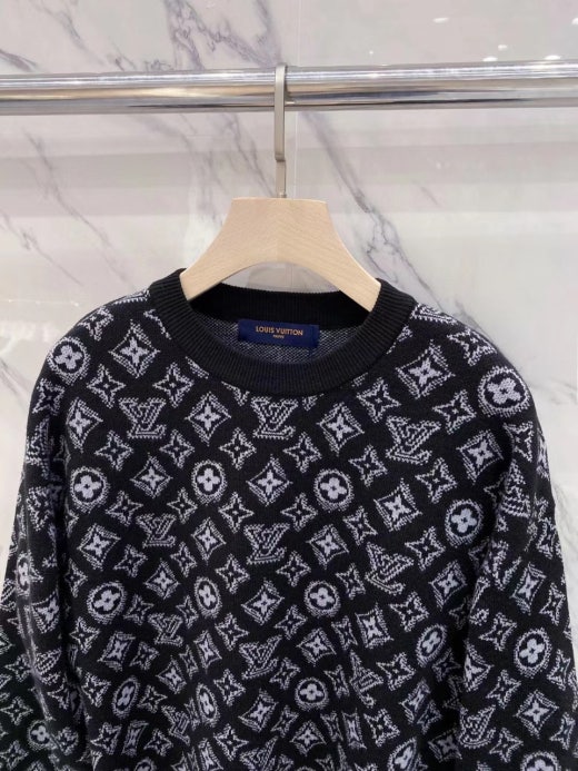 루이비통 자가드로고 캐시미어 울라운드 니트 블랙 남성용(1컬러)