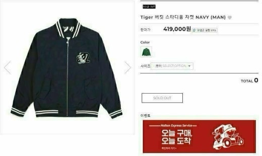 말본 매.장.판 Tiger 버킷 스타디움 자켓 네이비 남성용(1컬러)
