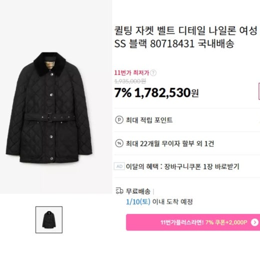 버버리 퀄팅 나일론 벨트 자켓 블랙 여성용(1컬러) ⚓224