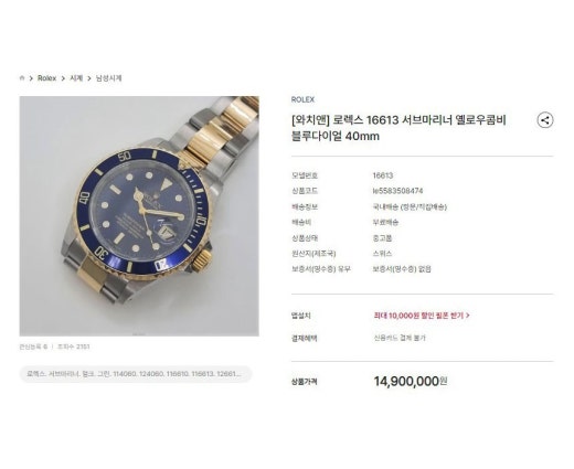 로렉스 서브마리너 블루콤비 골드 블루다이얼 남성용(1컬러)