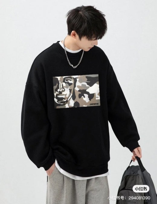 루이비통 쉐도우 페이스 프린팅 맨투맨 티셔츠 블랙 남여공용(1컬러)