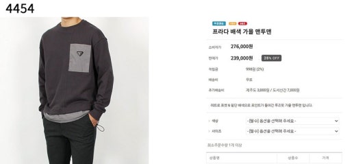 프라다 배색 가을 맨투맨 남성용(2컬러)