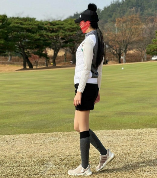 👉 뒷 허릿단 로고 자카드 포인트 패딩 다운 베스트 및 니트 이너 티셔츠와도 코디가 잘어울리는 니트 스케트 . 겨울 봄 시즌 스커트